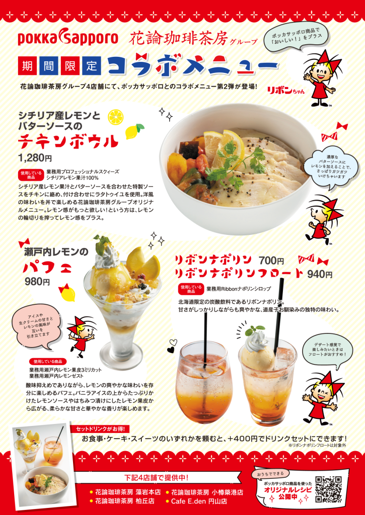 3月15日(金)より、花論珈琲茶房グループにてポッカサッポロ北海道様とのコラボメニュー第2弾が登場します!